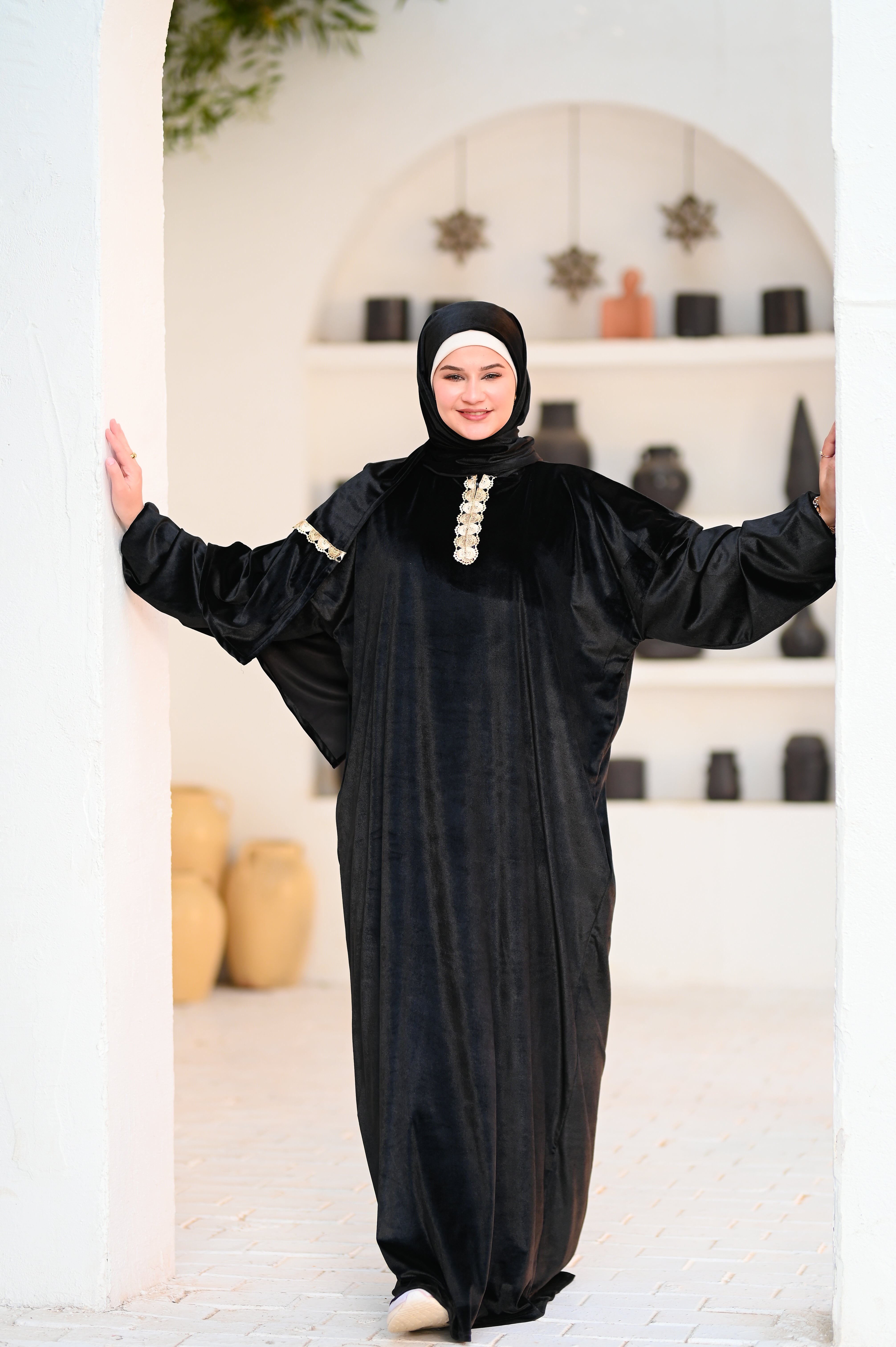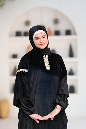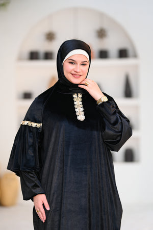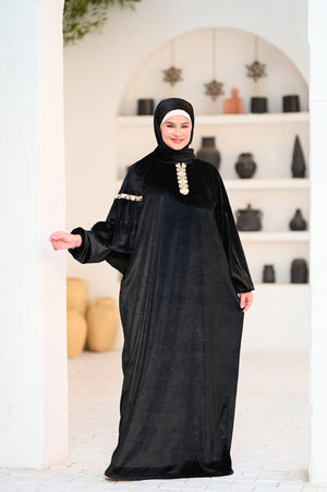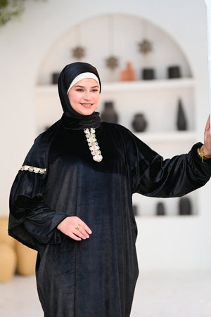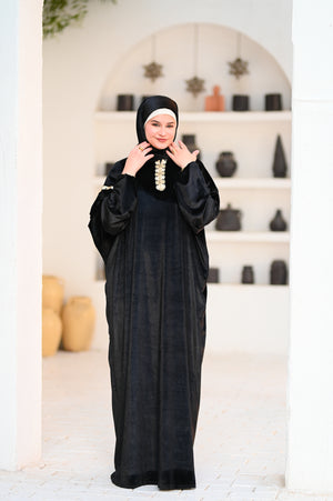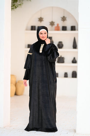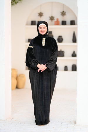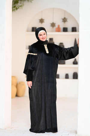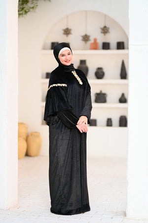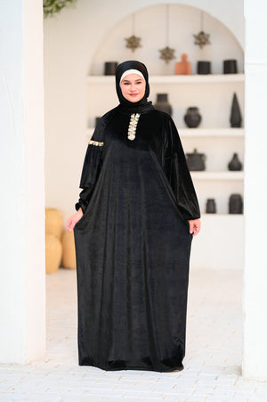 إسدال قطيفة بخامة ناعمة ودافية، مريح في اللبس وشكله فخم.