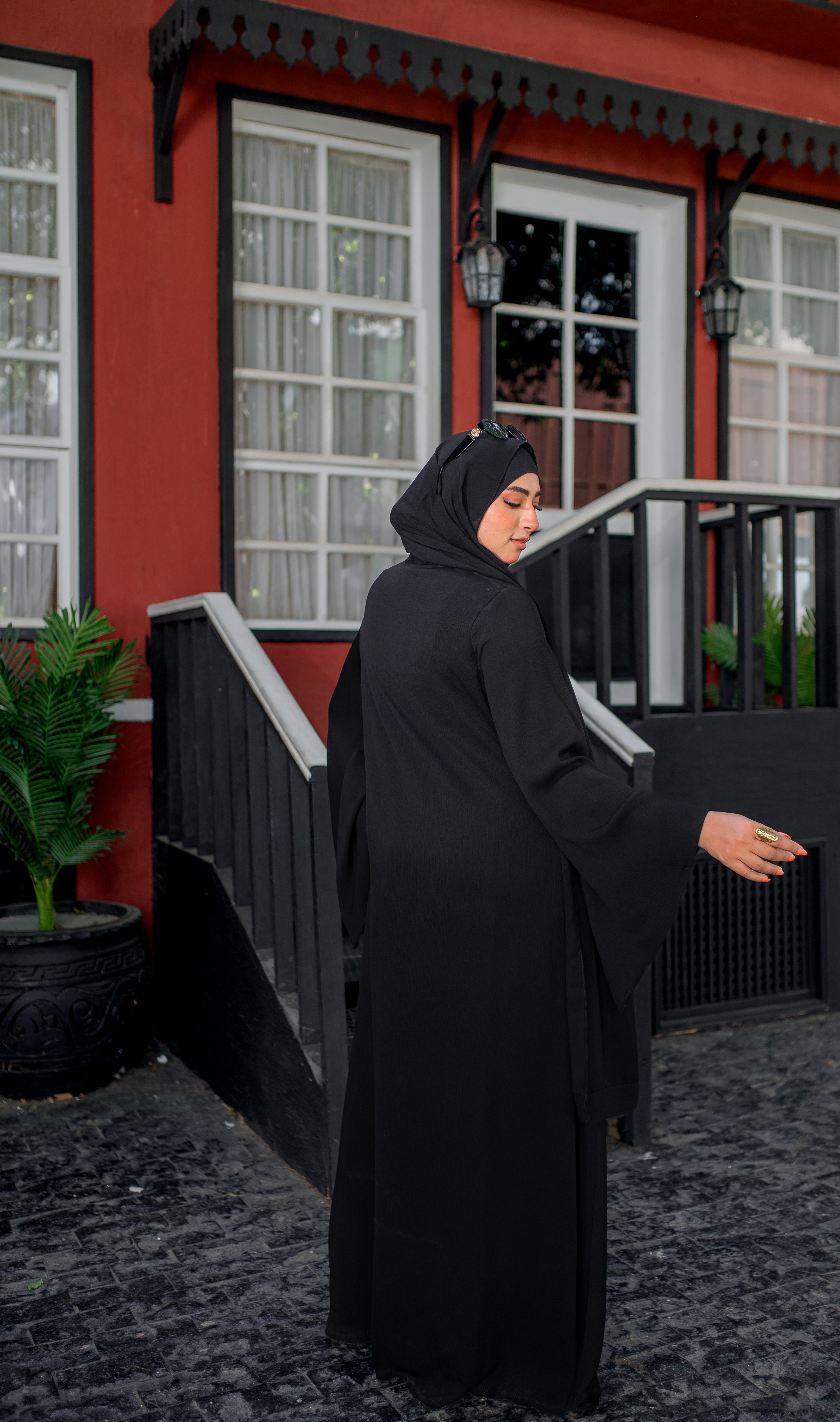 في رؤية بنركز على العبايات السادة الأسود… من غير شغل كتير ولا ألوان زيادة، بس بقصّات مظبوطة وجودة خامة تخطفك من أول لمسة. بنشتغل على خامات حرير وكوريشة وأي خامة مستوردة تخدم راحتك وشكلك طول اليوم.